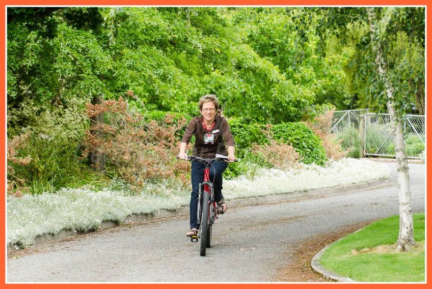 GW20131117-64473 Published November 21, 2013 at 1230 × 825 in 2013-11-17 Toast Martinborough 22 back around the vineyards and Phyll Pattie arrives by bicycle!!