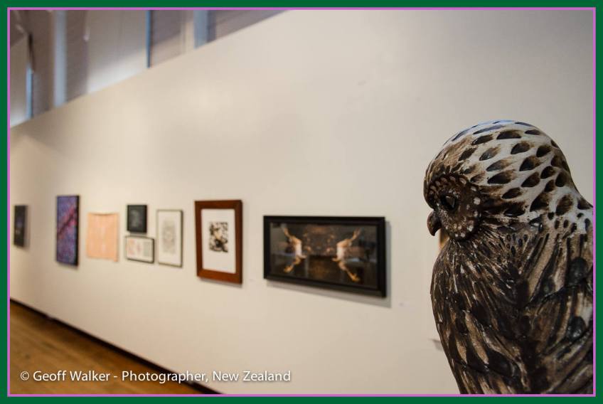 Sam Luddens entry watches over the gallery. Published November 30, 2013 at 1230 × 825 in 2013-11-22 Friends of Aratoi Art Awards 2013.