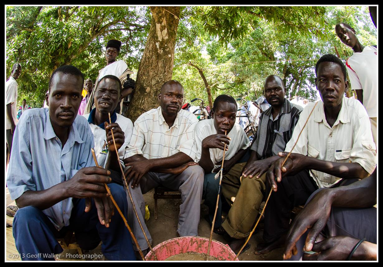 A drinking club partaking in a homebrew made from fermented millet. Published January 3, 2014 at 1230 × 858 in 2013-07 July in Uganda