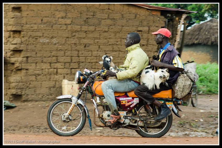 GW20130802-38916 Published January 5, 2014 at 1230 × 825 in 2013-08 Hot August Ugandans!! A goat on the front and another on the back…. one boda, tow people, two goats!!