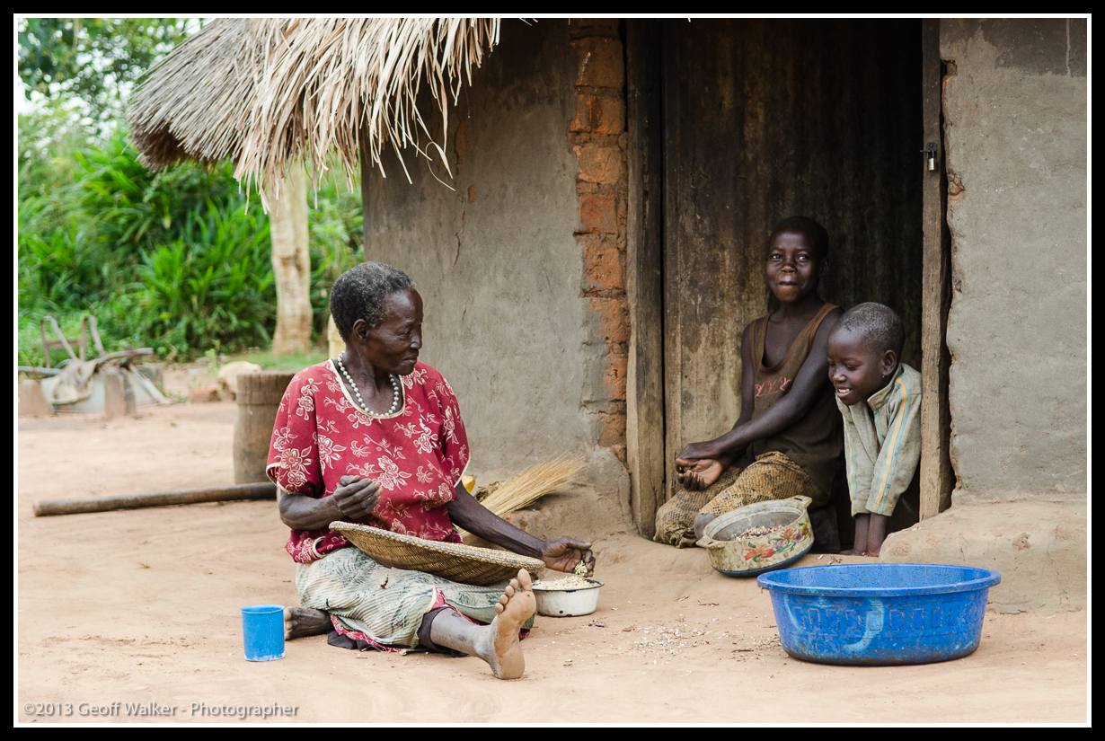 GW20130815-41765 Published January 5, 2014 at 1230 × 825 in 2013-08 Hot August Ugandans!! Big mama Jerodina in Awere with 2 grandchildren – no school for them as there is no money for fees.