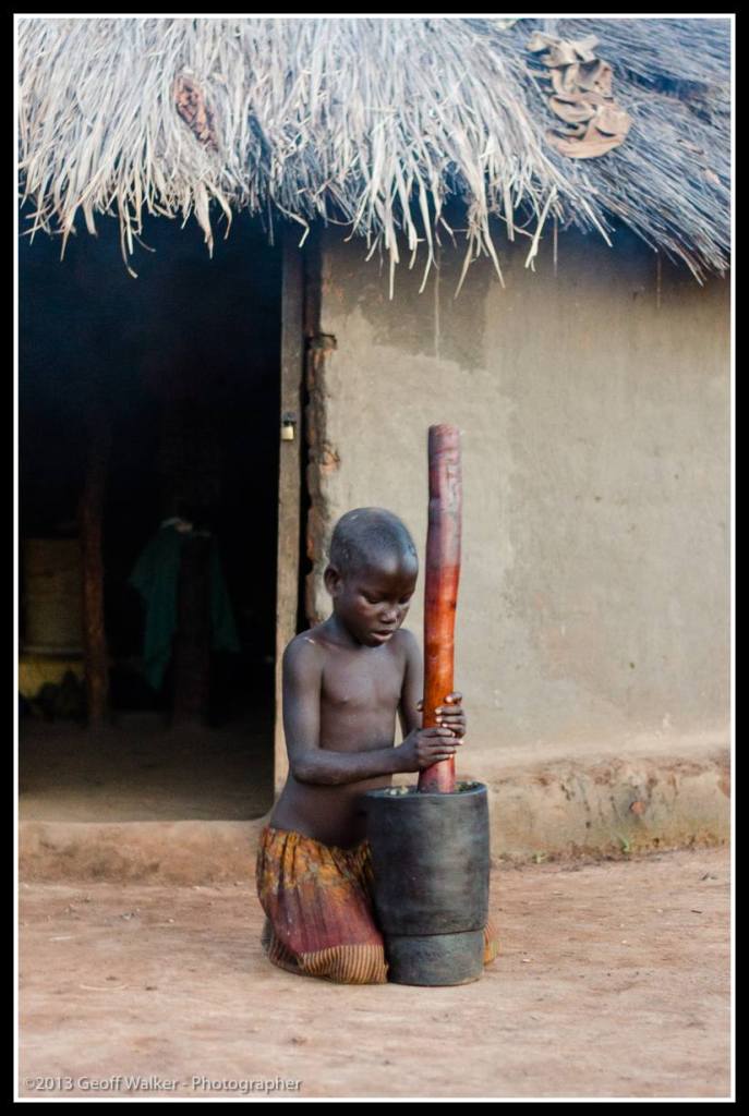 Young Gloria grinding grain- Ludok Village. Published January 5, 2014 at 825 × 1230 in 2013-08 Hot August Ugandans!!
