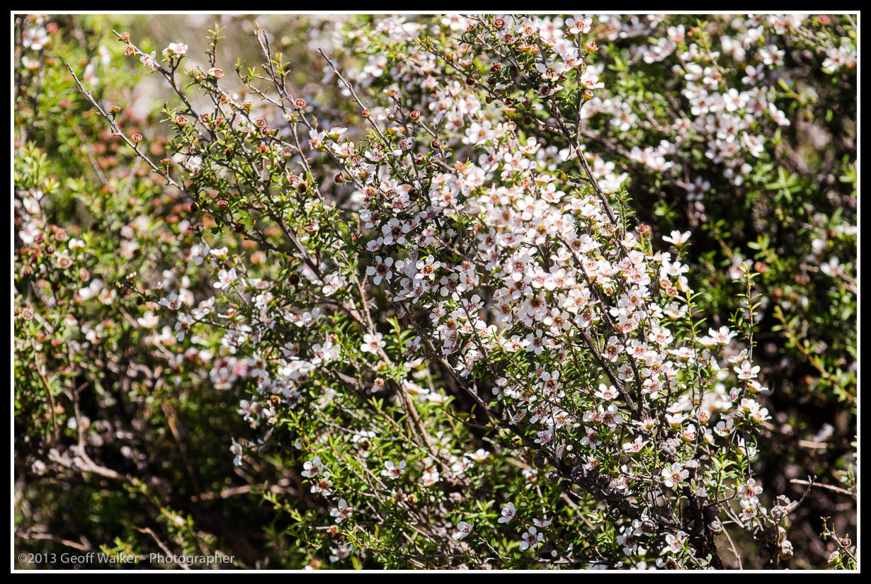Manuka flowering or is it kanuka??? Published February 4, 2014 at 1230 × 825 in 2013-12 Decembers selection…. -41.463380 175.543647