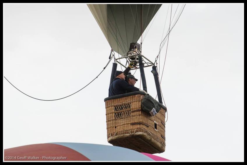 GW20140315-09432 Published March 16, 2014 at 1230 × 825 in 2014-03-15 Hot Air Ballooning Over Martinborough with Kiwi Balloon Company. Mark Wilton with passenger Dean are first off the ground.