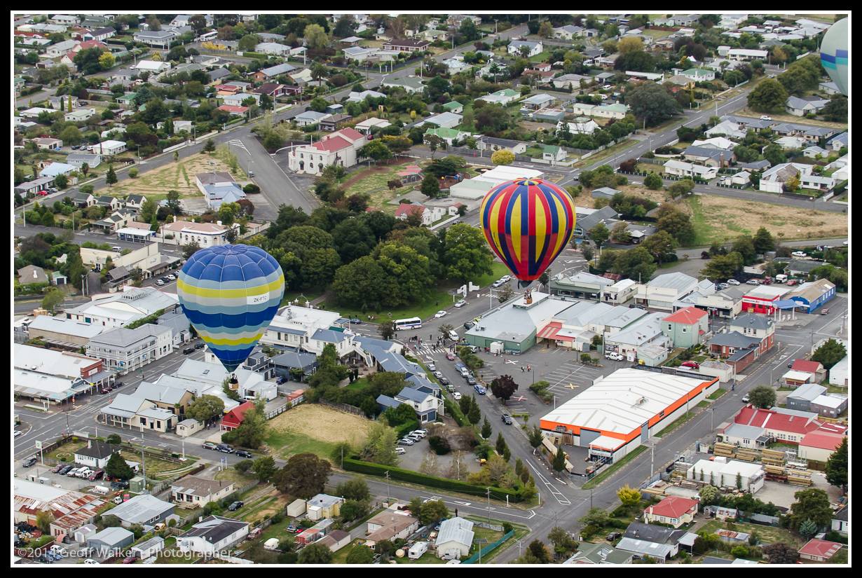 GW20140315-09769 Published March 16, 2014 at 1230 × 825 in 2014-03-15 Hot Air Ballooning Over Martinborough with Kiwi Balloon Company. Scott heading for the drop zone at PnK Mitre10